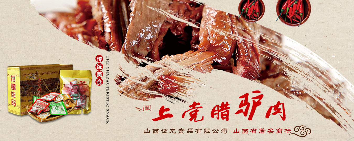 山西世龍食品有限公司是以“世龍”牌上黨臘驢肉系列產(chǎn)品為主導(dǎo),集科研開(kāi)發(fā)、良種繁育、基地建設(shè)、生產(chǎn)加工、市場(chǎng)營(yíng)銷(xiāo)于一體的農(nóng)業(yè)產(chǎn)業(yè)化國(guó)家重點(diǎn)龍頭企業(yè)、全國(guó)農(nóng)業(yè)標(biāo)準(zhǔn)化示范區(qū)、全國(guó)食品行業(yè)優(yōu)秀龍頭企業(yè)、山西省農(nóng)業(yè)產(chǎn)業(yè)化重點(diǎn)龍頭企業(yè)、山西省農(nóng)產(chǎn)品加工“513”工程單位、山西省帶動(dòng)貧困地區(qū)基地建設(shè)重點(diǎn)龍頭企業(yè)、山西省民營(yíng)畜牧業(yè)示范基地、山西省質(zhì)量信譽(yù)AAA級(jí)單位、山西省重合同守信用單位、山西省消費(fèi)者協(xié)會(huì)誠(chéng)信單位、山西省民營(yíng)科技企業(yè)。